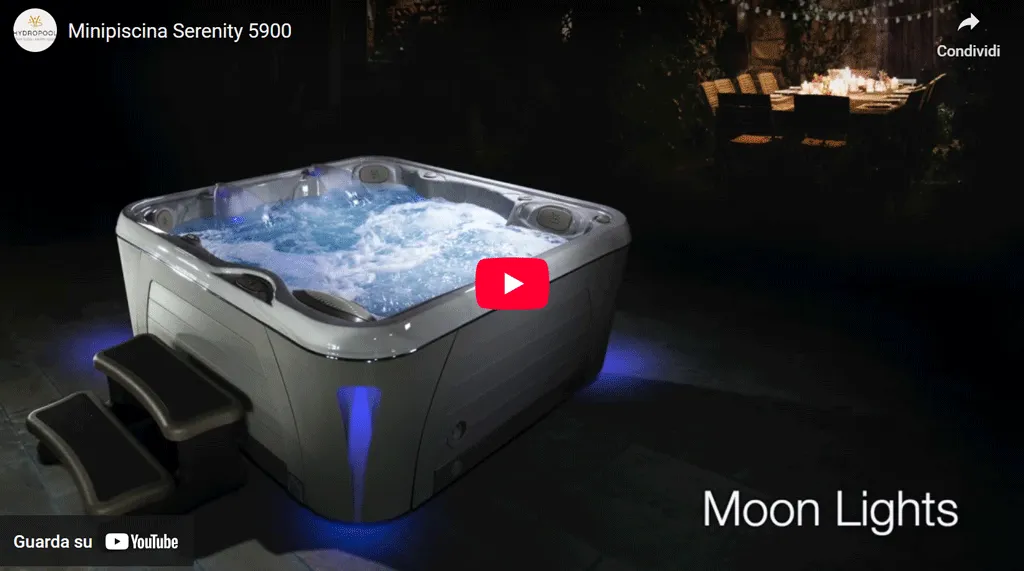 La Minipiscina Serenity 5900, che può ospitare fino a cinque persone, incarna l’innovazione nel settore delle minipiscine. Con i suoi programmi Wellness dedicati, offre un massaggio completo del corpo; ogni getto è pensato per